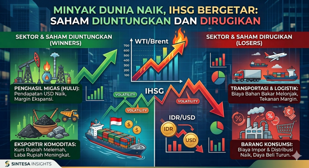 Berikut adalah bedah fundamental mengenai bagaimana fluktuasi kurs Rupiah, yang dipicu oleh dinamika harga minyak, menguntungkan atau merugikan sektor tertentu: